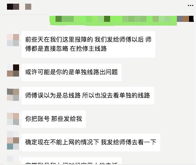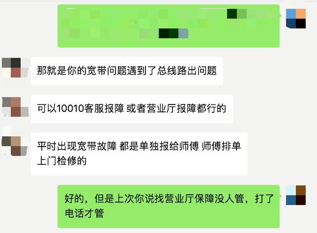 营业厅回复:因为抢修主线路,个人用户报障被忽略
