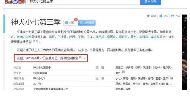 据了解,神犬小七第三季是于2019年6月27日在爱奇艺、腾讯视频播出。